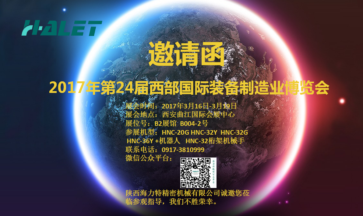 | 海力特智能機床誠邀您參加第二十四屆中國西部國際裝備制造業博覽會 |